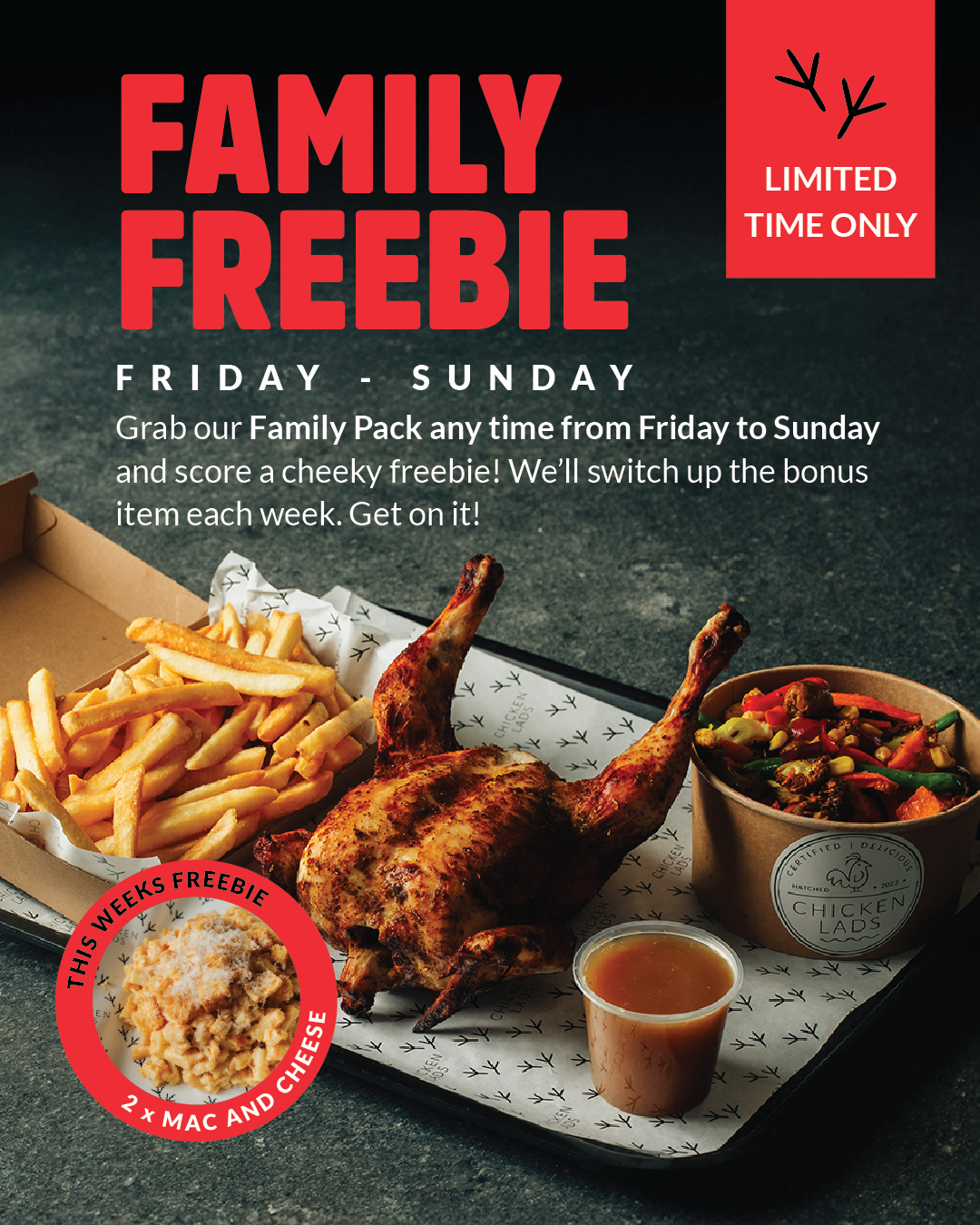 Not in the mood for a whole chook? Sink your teeth into our loaded chicken buns, fresh gourmet salads, and hot chips that are nothing short of addictive. That’s lunch and dinner sorted!